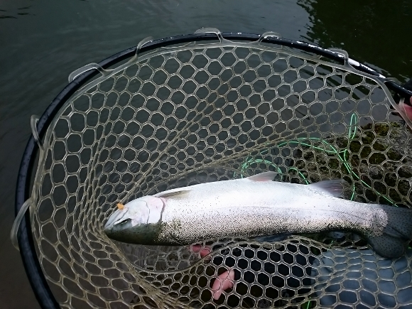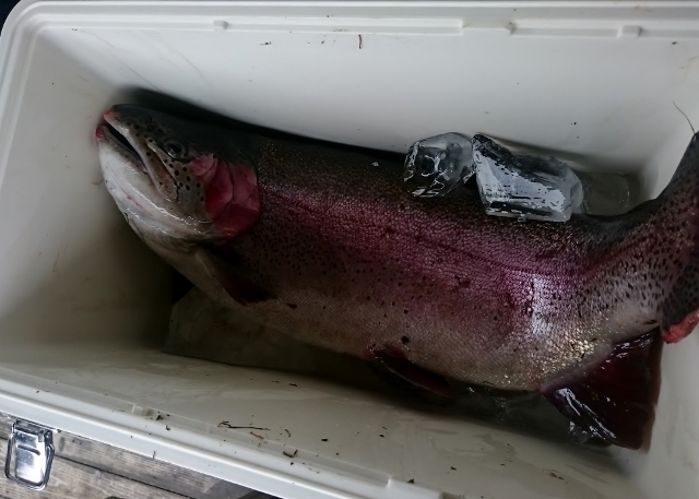 3日前は気温が30度まで上がり暑く、昨日から一気に気温が下がりとても寒い日になりました。寒さに負けて早めに帰る方がいました。活性が良く釣れていましたが寒さ対策を忘れずに。おとといレイクで65オーバーのドナルドソンが出ました。ポンドでも大物が泳いでいるのが確認されました。どちらもまだまだチャンスがあります。高活性になった裏磐梯での釣りに釣戦して見てはいかがですか。(金)