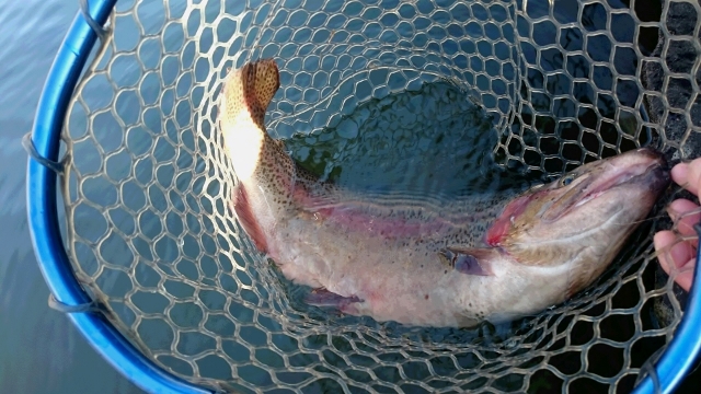 今日はレイクが美味しい釣りが出来ましたよ。午後は渋くなりましたが、しゃくれたトラウトが出ましたよ。これからがレイクの美味しいシーズンですゴールデンウィークにかけてかなりいい思いをする人が多くなると思います。ポンドもレイクもこれからが本番です皆さまのお越しをお待ちしています。(金)