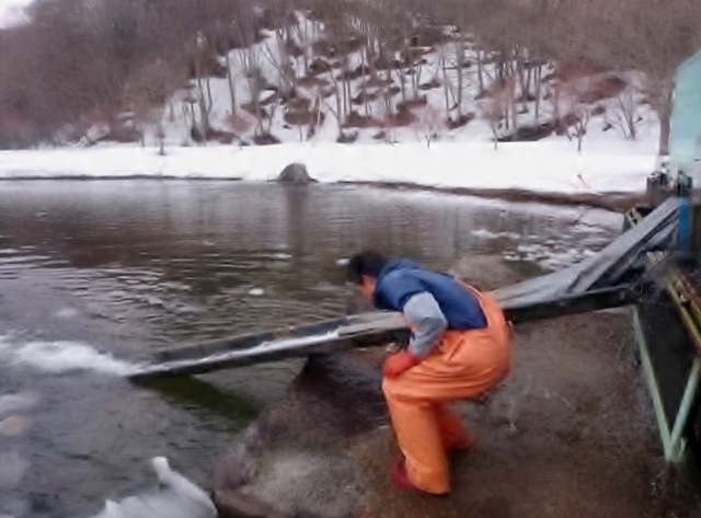 朝早くから入場を待っている車が沢山来て、雪が残っている中多くの釣りアングラーが来て下さいました。